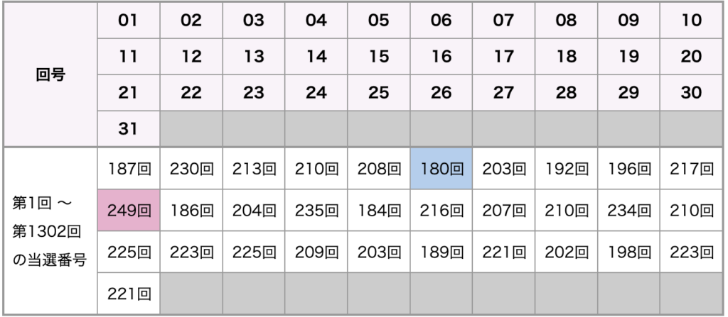| 第1297回 2024-08-20(火) | 01 12 17 21 28 (31) |