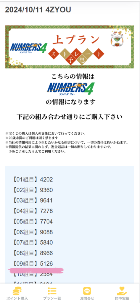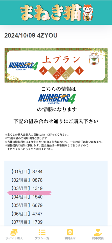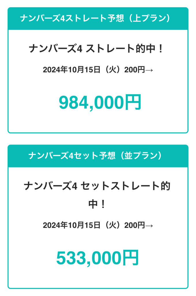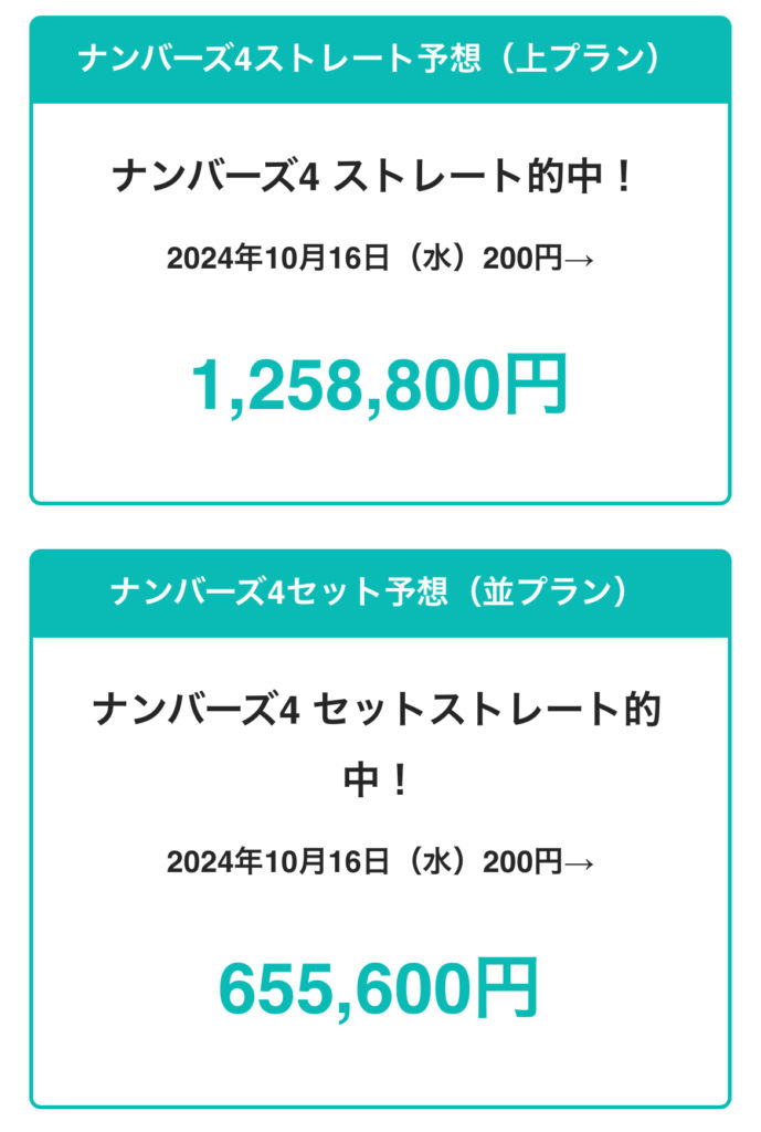 10月10日ナンバーズ4上プランストレート当選1,008,200円