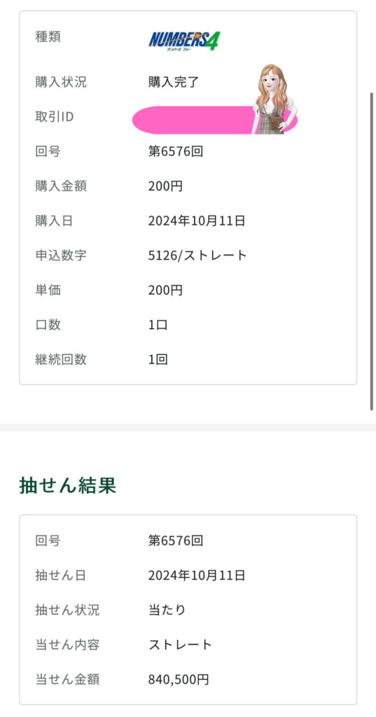 10月11日ナンバーズ4上プランストレート当選840,500円