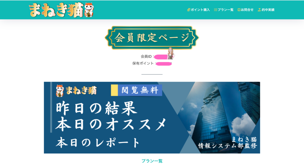 まねき猫の非会員ページのトップはこんな感じ!!👍🏻