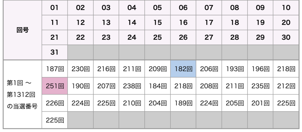 | 第1303回 2024-10-01(火) | 07 14 17 30 31 (22) |