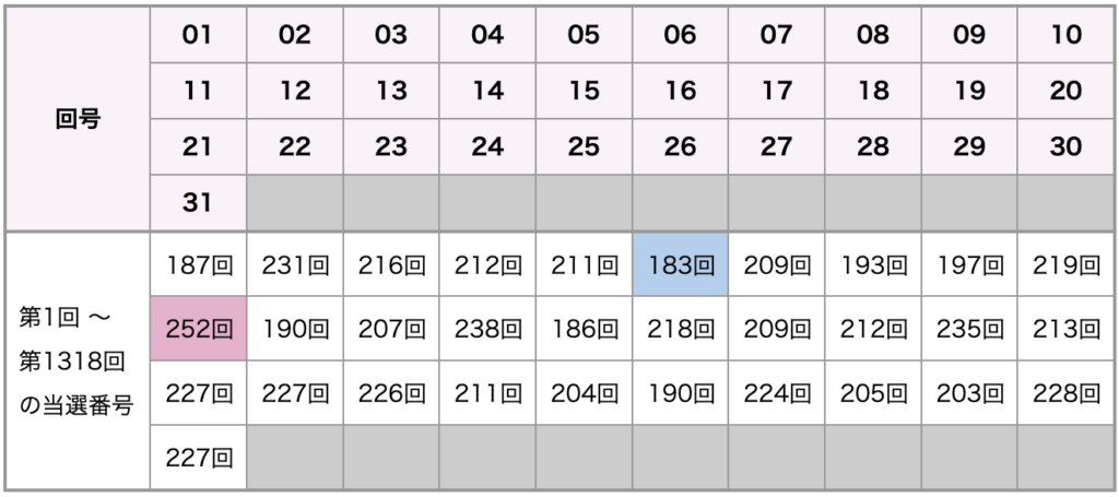 | 第1317回 2025-01-14(火) | 07 22 26 30 31 (11) |