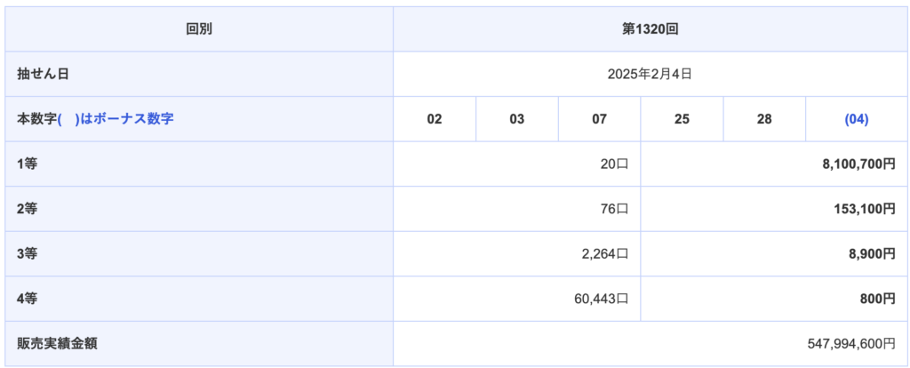 最新回のミニロトの結果はこれだよ!↓