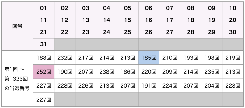 | 第1317回 2025-01-14(火) | 07 22 26 30 31 (11) |