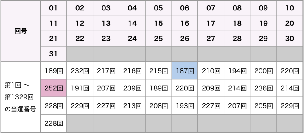 | 第1321回 2025-02-11(火) | 01 05 06 24 25 (11) |