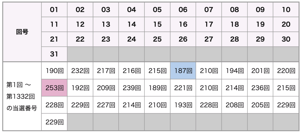 | 第1330回 2025-04-15(火) | 01 13 24 25 31 (11) |