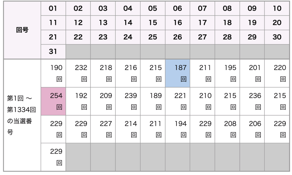 | 第1330回 2025-04-15(火) | 01 13 24 25 31 (11) |
