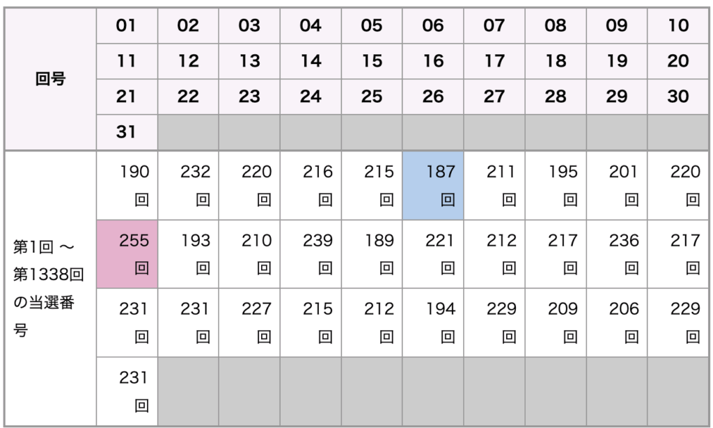 | 第1335回 2025-05-20(火) | 12 17 18 22 31 (30) |