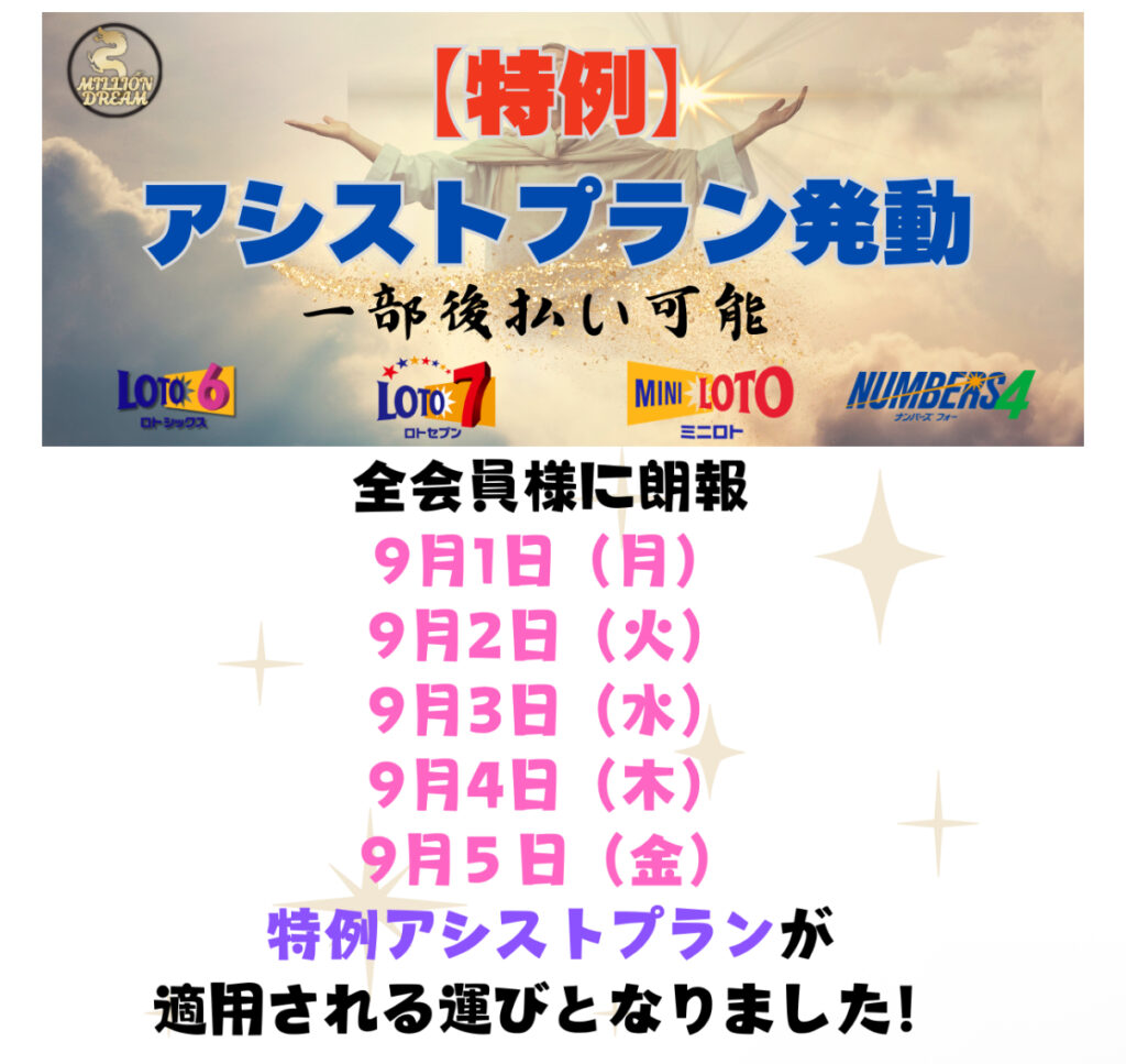 まねき猫_ミリオンドリーム_ミリオネア_百万石_宝くじ予想サイトで高額当選!2025年9月1日の参加プラン!ロト、ナンバーズ、予想、数字、無料!