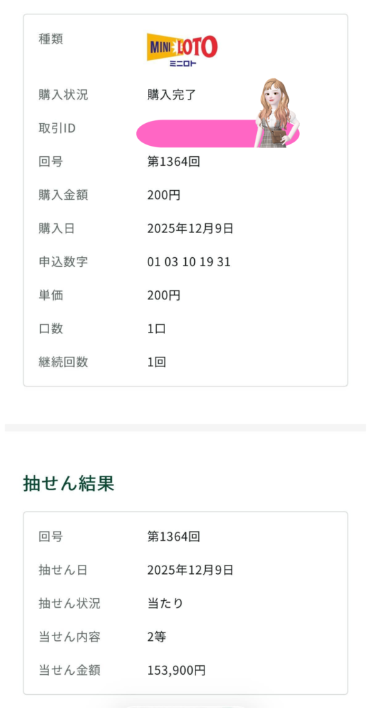 ミニロト上で当選!