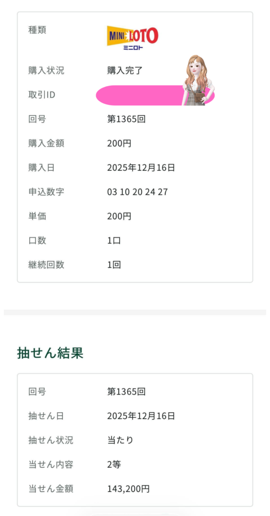 ミニロト2等当選したよー!