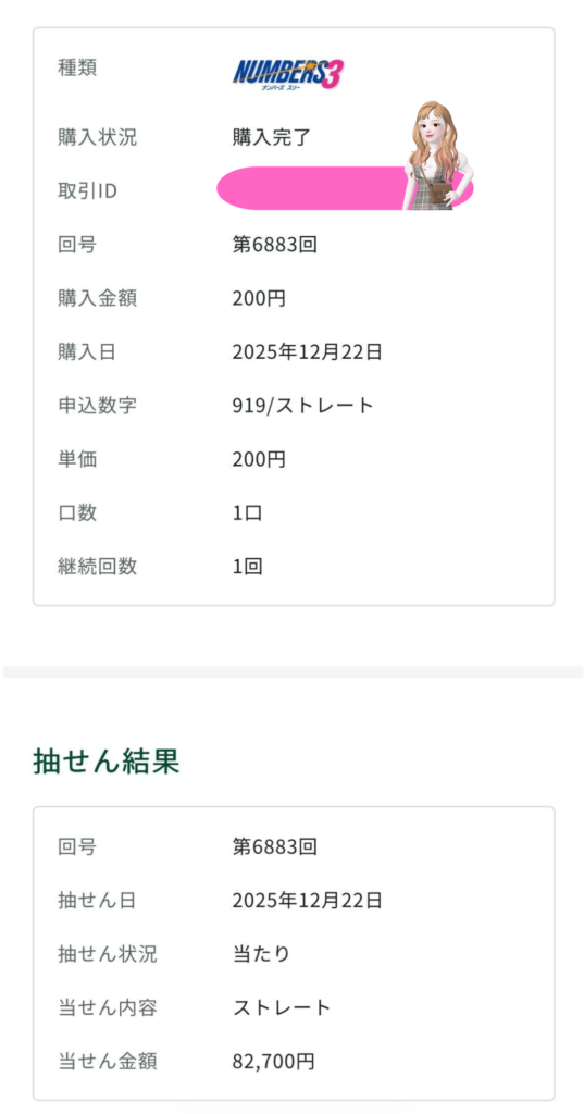 ナンバーズ3当選したよ!🎶