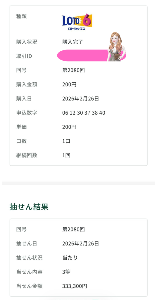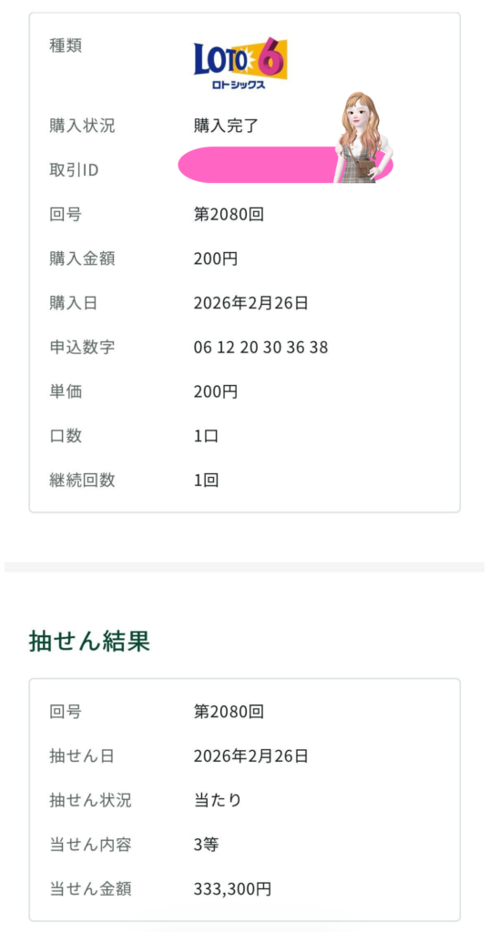 まさかのロト6で3等当選!!