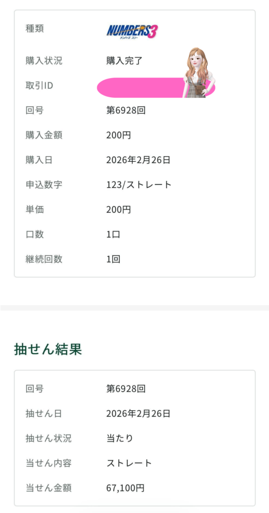 ナンバーズ3両方で当選!!
