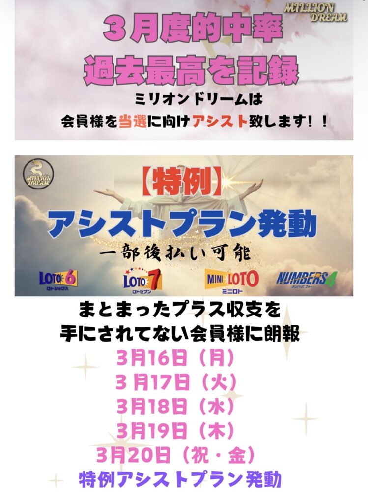 まねき猫_ジパング_ミリオンドリーム_ミリオネア_百万石_宝くじ予想サイトで高額当選!2026年3月20日の参加プラン!ロト、ナンバーズ、予想、数字、無料!