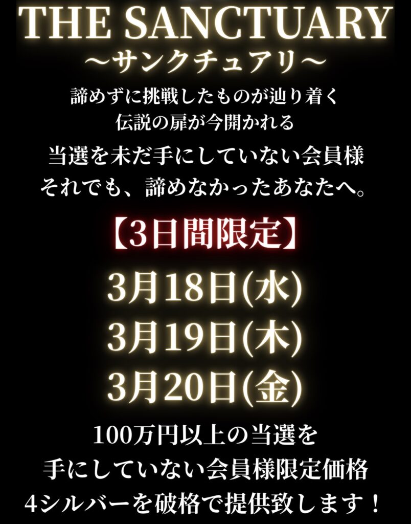 サンクチュアリ今日は不当選だったね!