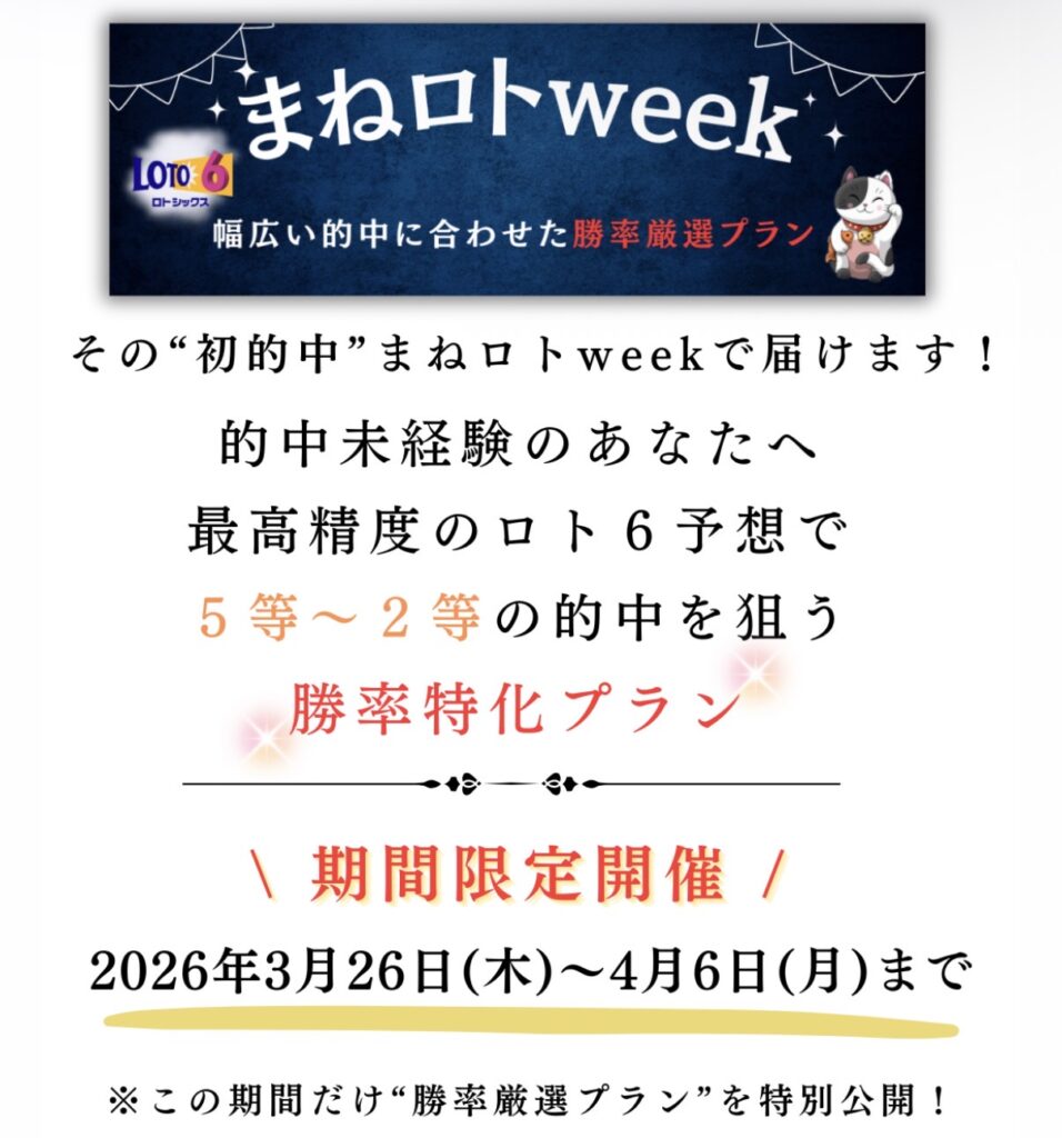 まねき猫_ジパング_ミリオンドリーム_ミリオネア_百万石_宝くじ予想サイトで高額当選!2026年4月6日の参加プラン!ロト、ナンバーズ、予想、数字、無料!