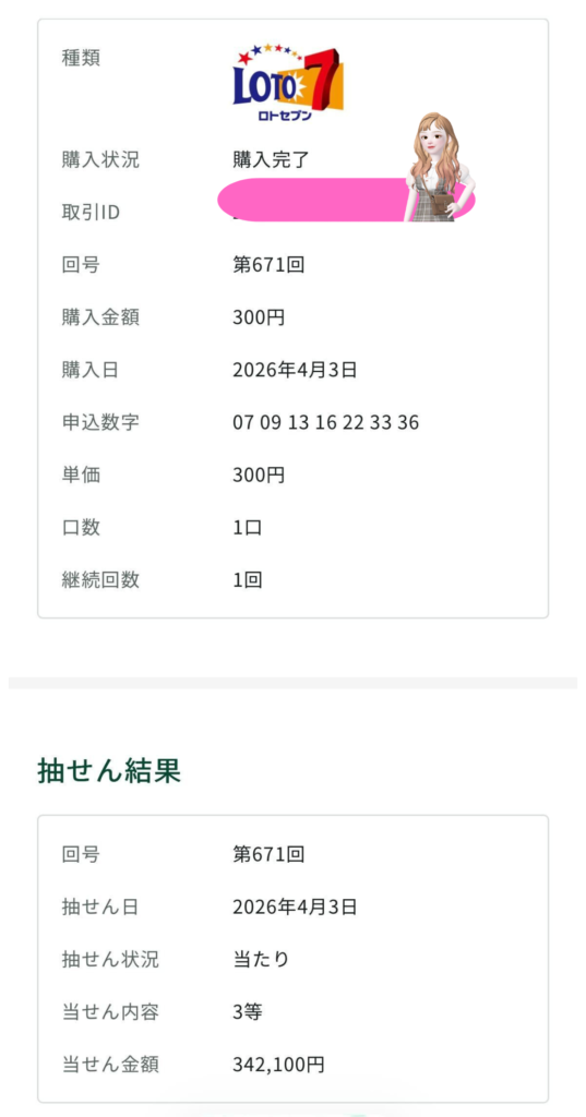 ロト7は惜しくも当たらなかった💦